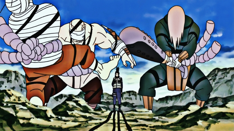 Shikamaru restringe o oponente com a técnica da Costura pelas Sombras, e usa suas sombras como finalização (Teleportes e Teletransportes escapam)3x